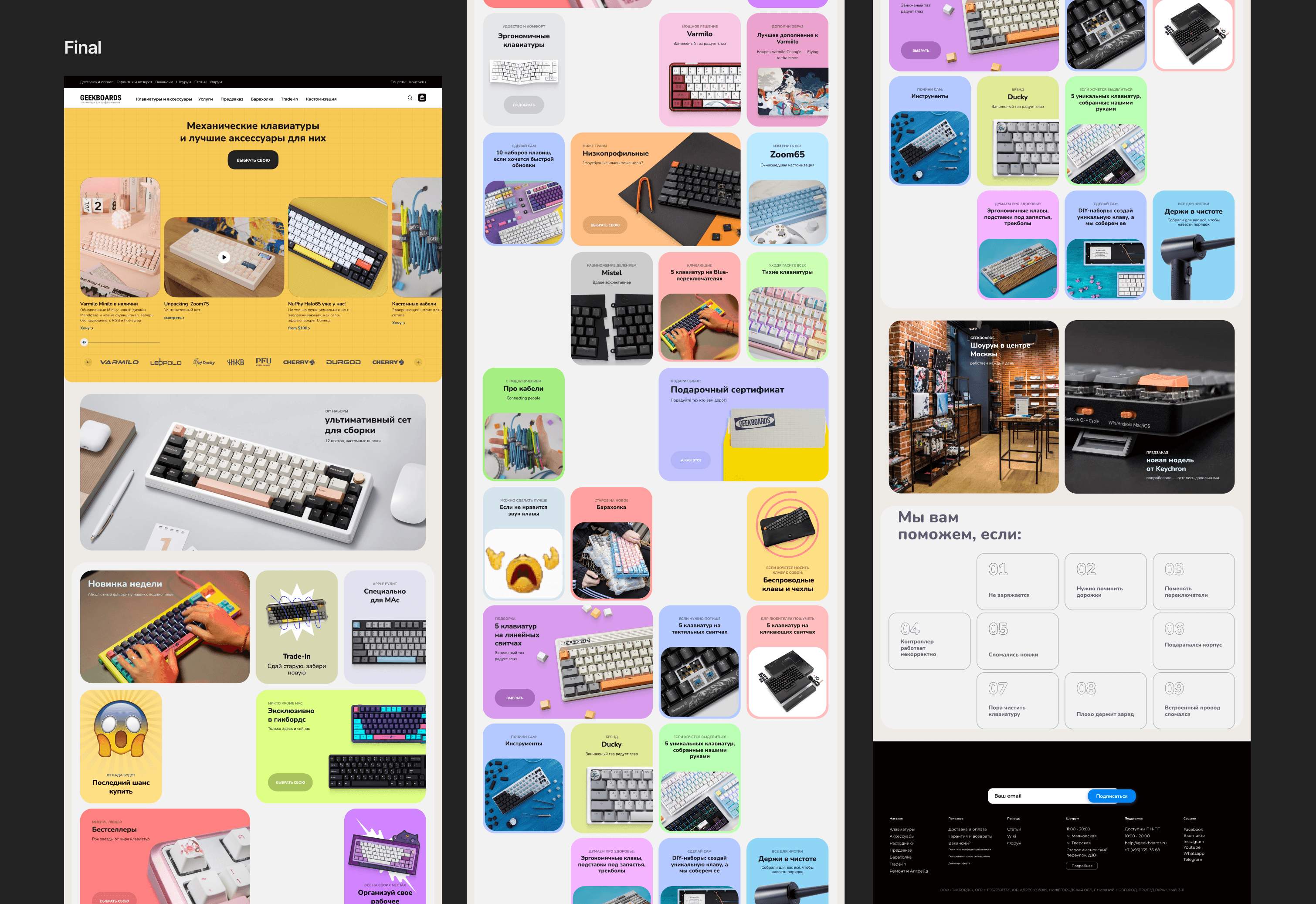 Что делал: Перепридумал структуру и карточки товара Сделал понятную навигацию и фильтры Создал компактную дизайн-систему Работал через прототипы, A/B тесты и аналитику Настроил удобную передачу макетов в разработку Что получилось: +25% к добавлениям в корзину −17% времени до покупки Дизайн стал чище, проще, ближе к гикам